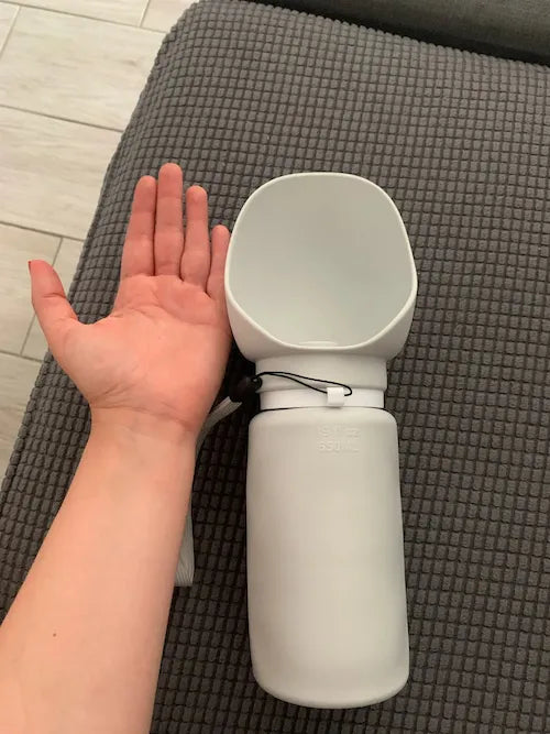 "OMG, this has changed our walks with Max! No more worries about him staying hydrated. Easy to fold and carry, and Max loves drinking from it. The best travel bottle I've ever used for him. Highly recommend this to all pet parents!😍"